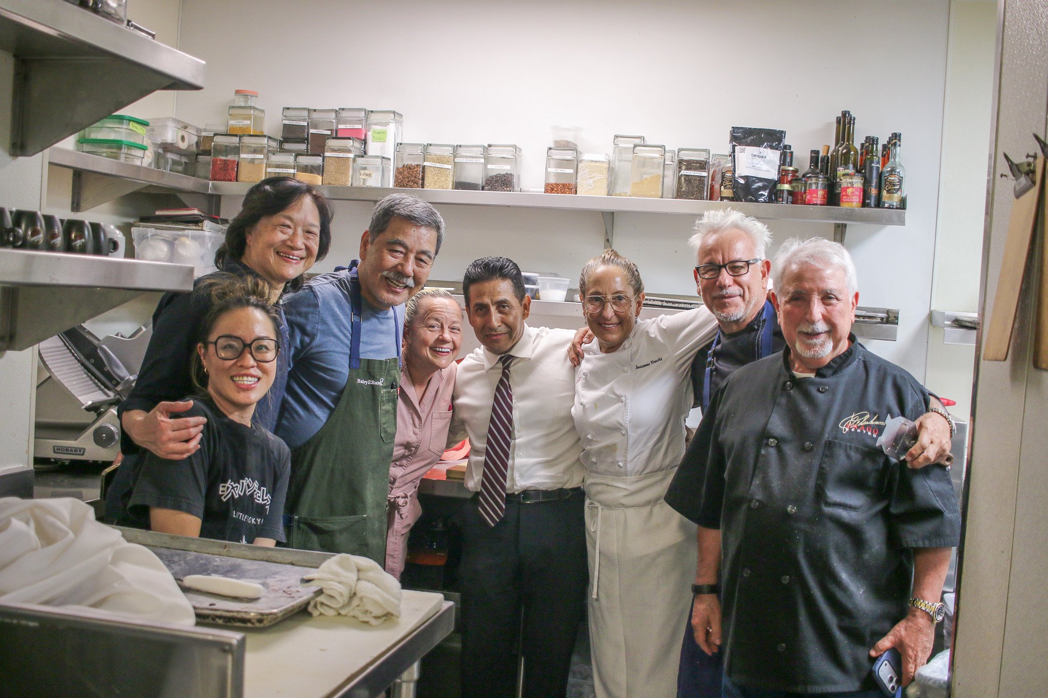Chef Kazuto Matsusaka (Dear John’s), Chef Vicki Fan (Dear Jane’s), Chef Chris Ono (Temaki Togo), Chef Raphael Lunetta (Lunetta), Chef Jennifer Lee (Aloha Cafe), Chef Roy Yamaguchi (Roy’s), Chef Andreas Nieto (LA Prime, Westin Bonaventure), Chef Suzanne Tracht (Jar), Chef Celestino Drago (Drago Centro), Chef Anh Do (Westin Bonaventure), and Chef Sherry Yard (Bakery by the Yard).